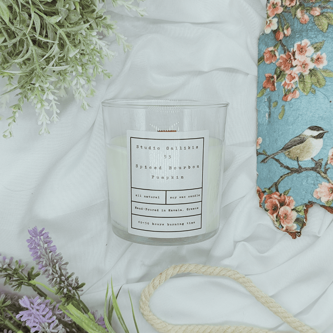 Το φθινόπωρο σε ένα κερί! Το Spiced Bourbon Pumpkin είναι ένα αρωματικό κερί σόγιας 240g που παντρεύει την κλασική κολοκύθα με πικάντικες νότες κανέλας, μοσχοκάρυδου και ένα φίνο άγγιγμα από παλαιωμένο bourbon. Ιδανικό για τις δροσερές μέρες και τις ατμοσφαιρικές νύχτες που θέλεις ο χώρος σου να μυρίζει… σαν σπιτικό, αλλά με χαρακτήρα.
